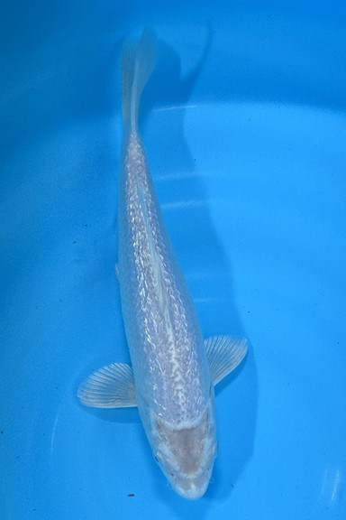 鱗の銀鱗が背一面に入った個体、複数の錦鯉と混泳しても目立つ個体。