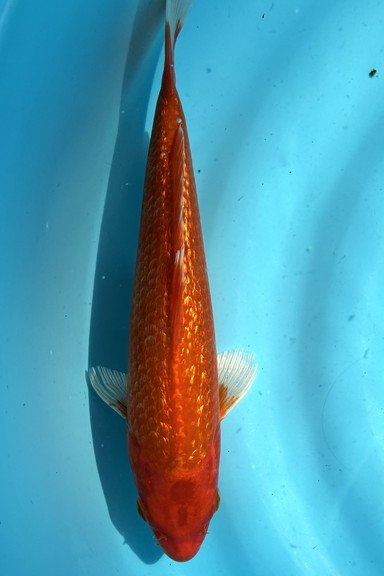 銀鱗が背一面にちりばめられた様に入る個体、頭部のオレンジも艶があり美しい個体。