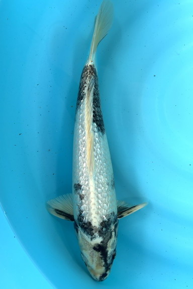 銀鱗が背一面にちりばめられた様に入る個体、墨のバランスも良く白地も美しい個体。