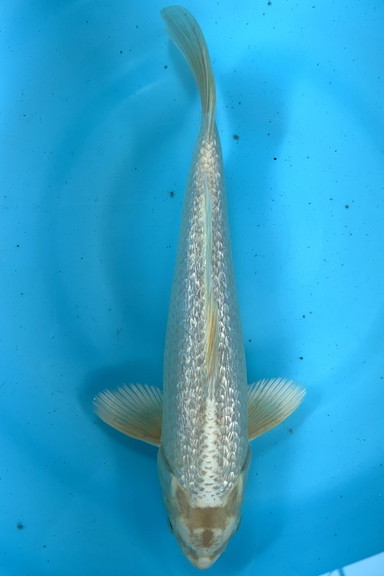 鱗の銀鱗が背一面に入った個体、複数の錦鯉と混泳しても目立つ個体。