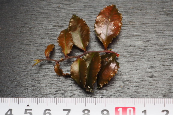 ギザギザとした濃い茶色の葉が特徴的な種。