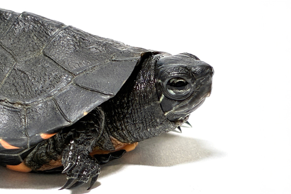 シックな黒色がカッコいいカントンクサガメですが、雄では稀に四肢や頭部、場合によっては甲羅までも鮮やかな橙色や赤色を発色する個体が見られます。 甲長10p超えたあたりから頭部の模様や鼻先が鮮やかになり始めたらいい意味で要注意です。 「本当に同じ種類?」と思うくらい美しく鮮やかなカメに変化していきます(そうなった場合は市場価値もグッと上がります)。ある意味、宝くじみたいなカメと言えるかもしれません。